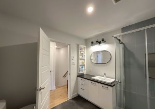 - Ajout d'un grand garde-manger (walk-inn) avec porte escamotable. -Ligne d'eau au frigo pour glaçons Salles de bain: -Céramique 24 x 24 dans toutes les SDB -Toilettes à jupe et à cuvettes allongées dans les trois SDB -Agrandissement de la vanité et upgrade au thermoplastique (SDB2e) -Bain de 7pieds et plancher chauffant dans la SDB du sous-sol. -Niches dans chaque douche (2e et sous-sol) Chambre 1 et 2 situées au 2e étage : -Modification et agrandissement des garde-robes en walk-in Garage transformé en rangement et salle de lavage. Peut redevenir facilement un garage standard. -Modification de l'espace garage pour faire un grand rangement et une salle de lavage -Cuve de garage et robinet -Plancher chauffant -Ajout de plusieurs luminaires -Ajout de tringles de suspension et tablettes -Armoires de rangement au-dessus de laveuse/sécheuse
